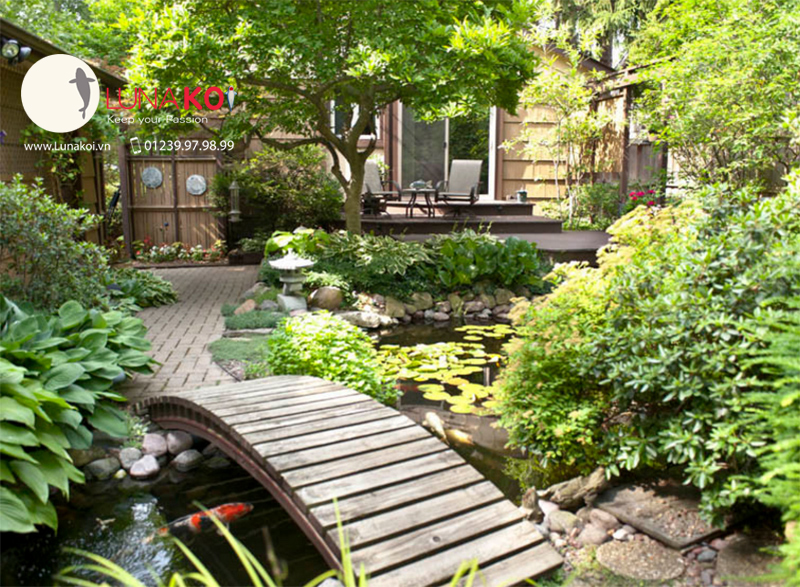 Trang trí quanh viền hồ cá chép Koi giúp tô đậm hơn bức tranh phong cảnh