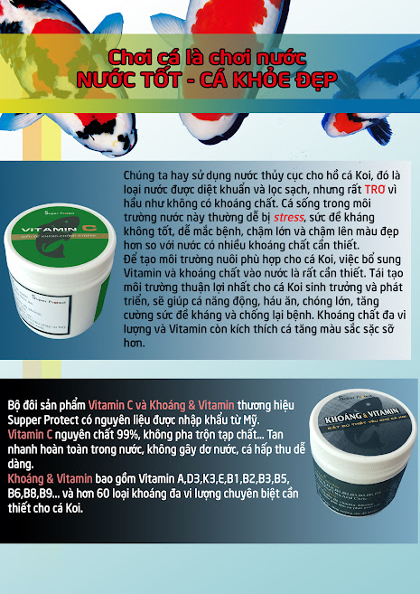 - Có thể đánh kèm Khoáng & Vitamin Super Protect để hỗ trợ tối đa cho quá trình phát triễn ổn định của hệ vi sinh trong nước, cung cấp dinh dưỡng cho cả hệ vi sinh và cá Koi. Vừa làm trong nước. Chi tiết sử dụng tại đây.